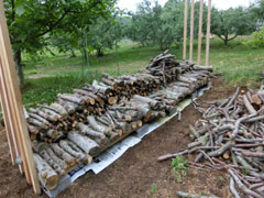 畑に薪を積みました。数日前からブロックなどを土台にして積み始め、ようやく今日完成しました。昨年より薪が多かった為、昨年より高さも高く、長さも長くしました。昨年積んだ薪が残っていますので、今年の薪は来年用です。