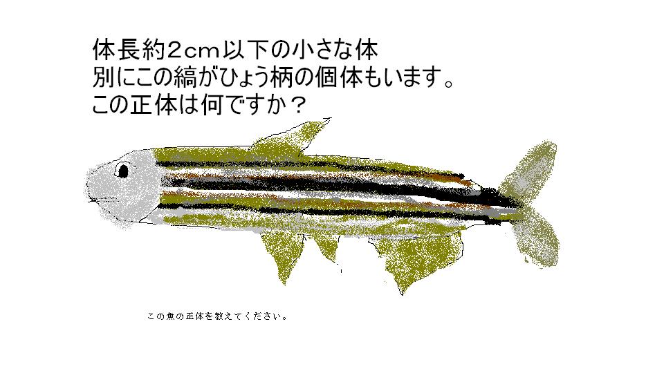 今日魚をムサシで購入しました。60cm水槽に入れるオイカワと熱帯魚水槽に入れる名前は忘れましたが2cm以下の魚を5匹入れました。魚の正体が分かりたいので特徴を言います、体長は大体1,5cmほどで体全体に薄い黄色で上のひれには薄く黄色が入っています、側面のヒレのすぐ下には、薄く黄色味があるグレーが入っていて、その下に黒の線が入っています、その下に黄色っぽく光る白色が入っていてその下にも黒があって、その下にまた黄色っぽく光る白色があります、その下には、黄色味のある白があります。ヒレは少し先端に、オレンジの色が入っています画像入れときました。オイカワの説明?をします。オイカワは成魚になると体長15センチほどで、オスの方がメスより大きい。背中は灰青色、体側から腹側は銀白色で、体側に淡いピンクの横斑が数本入る。三角形の大きな尻びれをもち、特に成体のオスは大きい。背中の背びれの前に黄色の紡錘形の斑点がある。上から見るとカワムツやヌマムツに似るが、各ひれがより大きく広がってみえる。ハスの若魚にもよく似るが、ハスは横から見ると口が大きく、唇が「へ」の字に曲がっているので区別できる。川の中流域から下流域にかけて生息するが、湖などにも生息する。カワムツなどと分布域が重複するが、オイカワのほうが水流が速く、日当たりのよい場所を好む。またカワムツに比べると水の汚れに強く、河川改修され生活排水が流れこむ都市部の河川にも生息する。食性は草食性の強い雑食性で、藻類や水草、水生昆虫や水面に落ちた小昆虫、小型甲殻類などを食べる。繁殖期は5月-8月で、この時期のオスは顔が黒く、体側が水色、腹がピンク、尾びれを除く各ひれの前縁が赤という独特の婚姻色を発現し、顔に追星が現れる。川の流れが速い浅瀬に群がり、砂礫の中に産卵する。卵は3日ほどで孵化し、成熟まで2-3年かかる。利根川水系と信濃川水系以西の本州各地、四国の吉野川水系、九州に分布し、日本以外では朝鮮半島、中国東部、台湾に分布する。ただし日本ではアユやゲンゴロウブナなど有用魚種に紛れて放流されることにより各地に広がった。近年改修によって多くの河川は流れがより緩やかになり、河床は平坦にされて 婚姻色いる。水の汚れや河川改修にも順応するオイカワにとって、近年の河川は生息しやすい環境へと変化している。21世紀初頭の時点では東日本、屋久島、徳之島などでも記録される普通種となっている。日本国内の移動で生態系への影響も比較的少ないとはいえ、外来種であることに変わりはない。改修への順応が低いウグイやカマツカなどの魚が減少する中、生息数が増えている。
