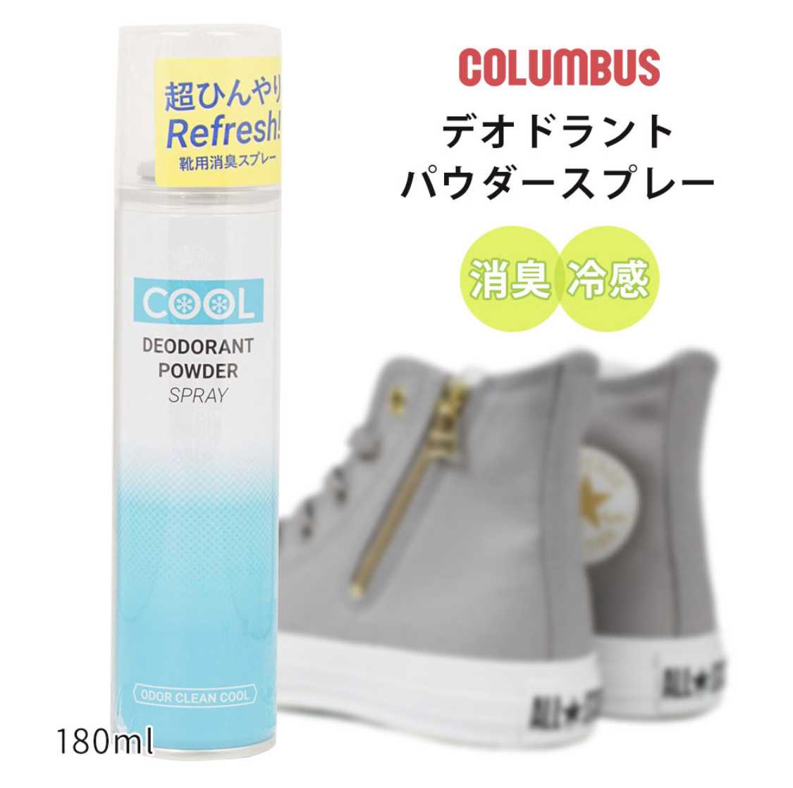 コロンブス デオドラントパウダースプレー【COLUMBUS 靴 消臭スプレー 消臭 冷感 クール】SUNSTONE今回は靴消臭スプレーです。そこのあなた、もう冬になるからといって消臭を怠ってはいけませんよ。冬の足の蒸れこそ臭い匂いを発していると感じますよね???ならば今すぐ消臭せねば!!!!! ですね。足が冷えると嫌だから二重に靴下を履く人もいらっしゃると思います。足はあなたが思っている以上に汗をかきます。そこを理解しとかないと、消臭をすることを面倒だと感じ怠るようになります。誰かの家にお邪魔した時、店に入った時、靴を脱ぐと周りがドン引きされますよ笑そうならないためにも、自分のためにケアをしましょう。以上です。 あざした😊