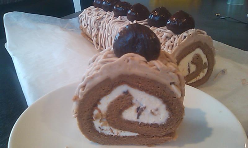 初めて作っちゃいました「モンブラン・ロールケーキ」!「cuoca」のホームページに載ってたレシピをチョチョッとアレンジして。 マロンクリームを絞ったとき、目詰まりしてても強引に絞ったら、ちょっと「天パ」っぽくなっちゃった。でもおいしかったですよ~。