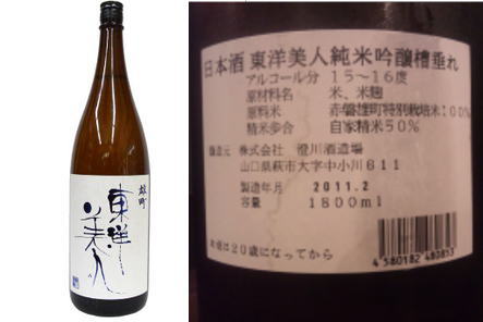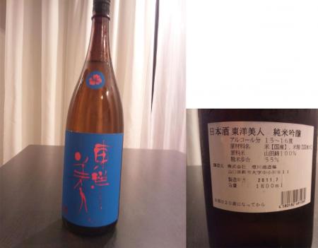 また酒の話。東日本のお酒も美味いですが、西日本も福井の黒龍・梵はもちろん、その他にも良いお酒がありますね。最近気に入っているのが山口県の「東洋美人」。ちょっと遅くなってしまったのですが、夏限定のお酒「夏の酒」、コレがまた美味かった。 山田錦を55%まで磨き上げた純米吟醸。東洋美人らしくすっきり爽やかな飲み口。それでいて、夏においしい、キリッとした仕上がりです。開栓して最初はキリッと爽快。それから数日後に一日だけですが、どこか花の香りにも似た、控えめながら華やかな香りのする日がありました。その日からは滑らかさがすこしずつ増し、そのうち徐々に重すぎないコクへと変わっていきました。日本酒というのは、開栓してから何日もかけて味が変化して祐希、それを味わう楽しむもありますね。ワインとちょっと似ていますが、ワインよりももっとゆーっくり変化していきます。いいですね~。