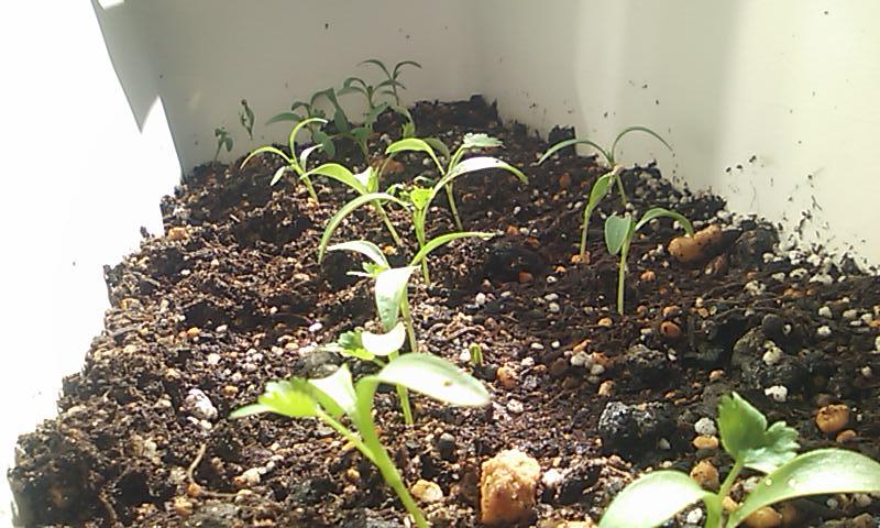 この前ベランダのプランターに植えたパクチー(コリアンダー)の種から芽が出ました! なんかカワイクないスか?