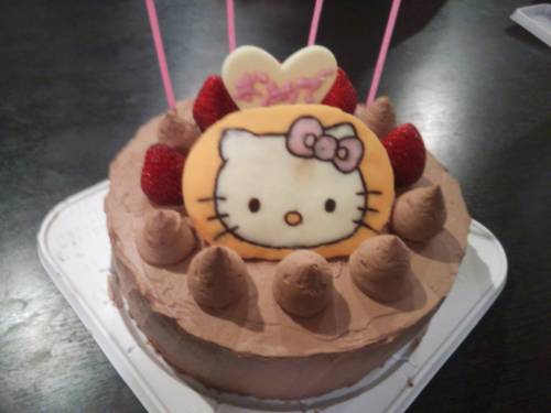 今年も手作りで頑張りました。先日の家族の誕生日ケーキはキティーちゃん。今年は時間がなかったので、キティーちゃんはチョコで作りました。後ろのハートのプレートには名前を入れさせたのだが・・・。小3男子の担当だったのだが、やっぱまだ難しいか。