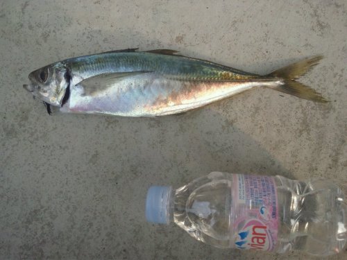 今朝、早く目が覚めたので、プラッと釣りに。釣り開始2分でコイツが33cmのアジ。1時間ほど釣っていたが、朝食の時間が来たので、納竿。今日は1匹だけ。刺身かな、たたきか、もう1匹でも釣れたらな・・・。