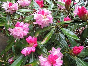 とてもきれいな庭園。シャクナゲが雨に打たれ、とてもきれいだわ。