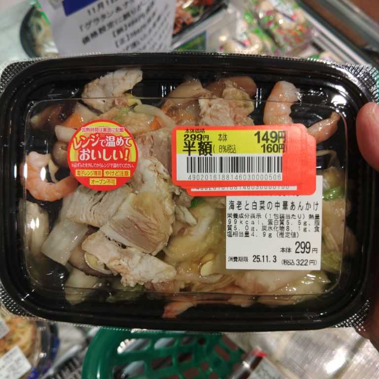 【食べた日:2025年(令和7年)11月3日(月・文化の日)】 ※ 海老と白菜の中華あんかけ(160円←322円)