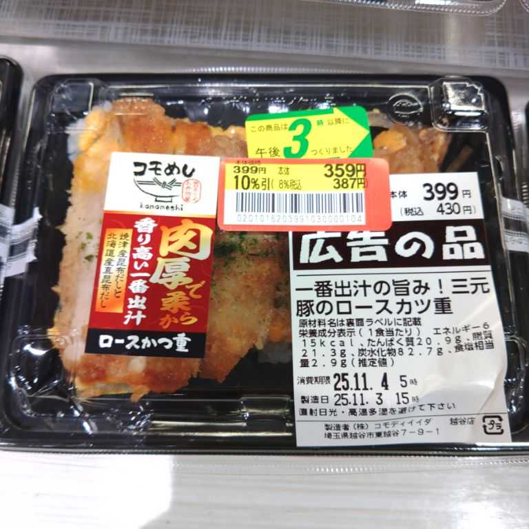 【食べた日:2025年(令和7年)11月3日(月・文化の日)】 ※ 一番出汁の旨味!三軒豚のロースカツ重(387円←430円)