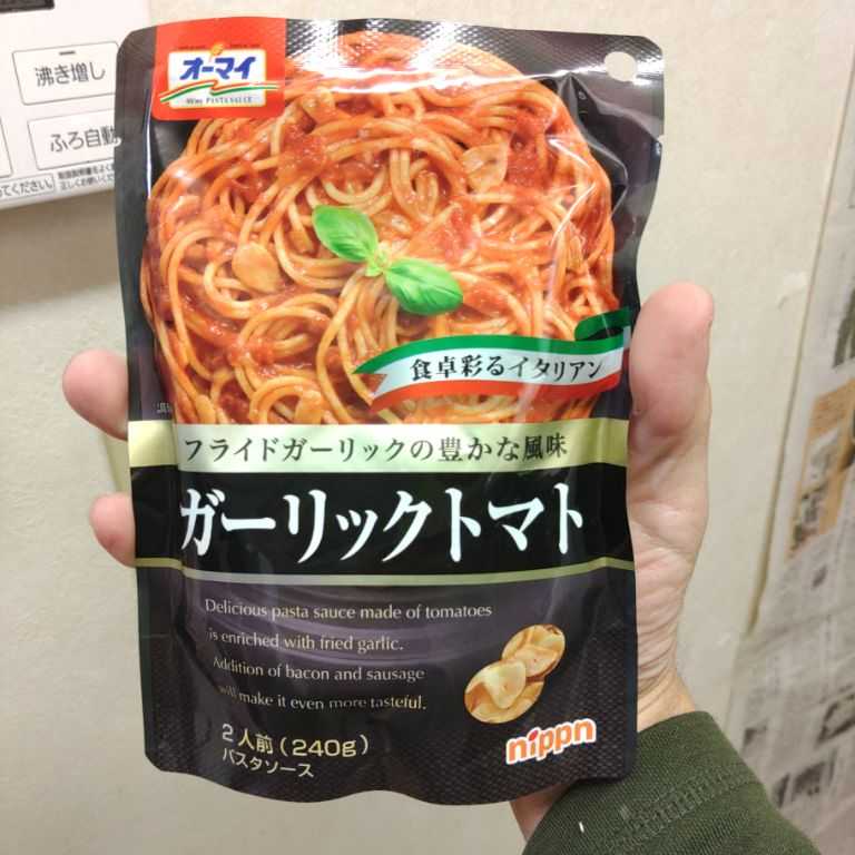 【食べた日:2025年(令和7年)11月6日(木)】 ※ 公式HPより トマトの甘みとフライドガーリックで風味豊かに仕上げたパスタソースです。 ※ オーマイ ガーリックトマト(107円)