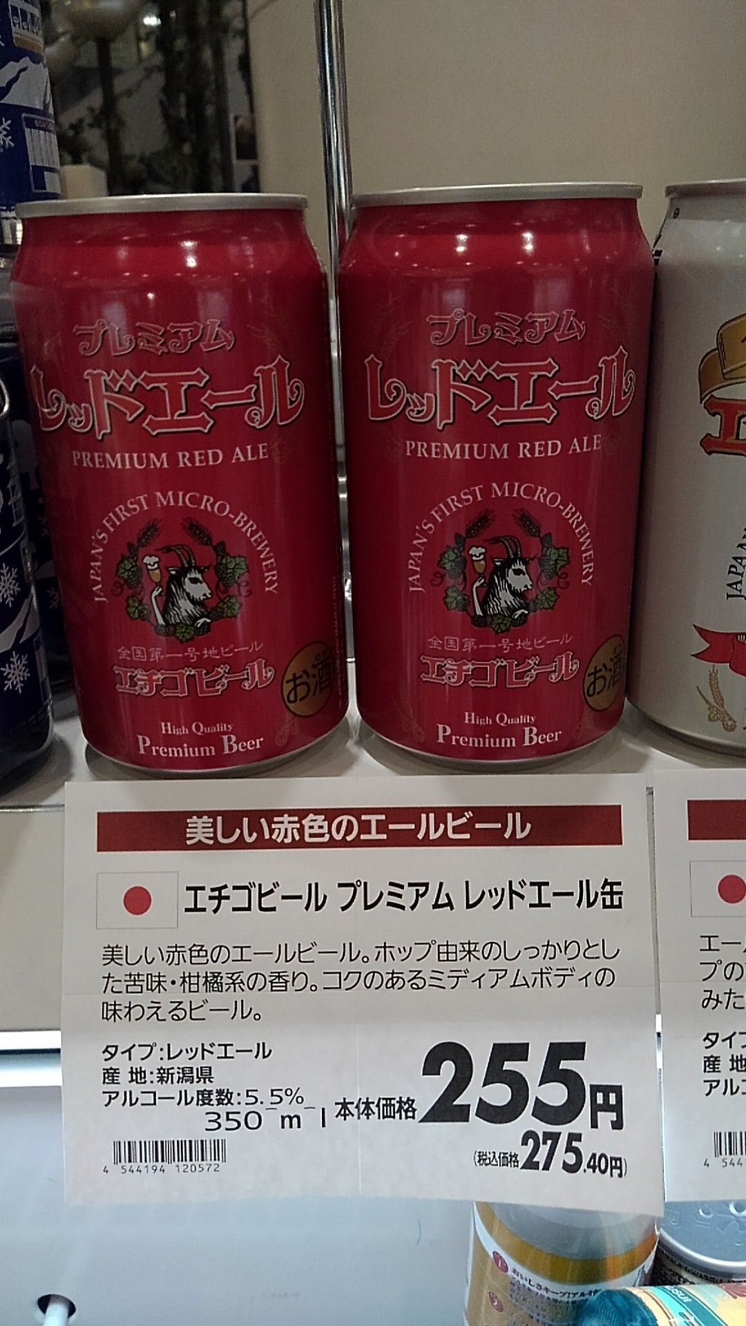 ※ エチゴビール プレミアム レッドエール(255円)
