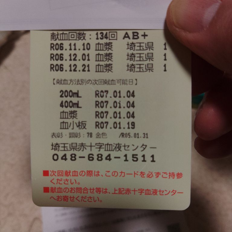 献血(148回目)〈越谷レイクタウン献血ル… 2025年10月19日