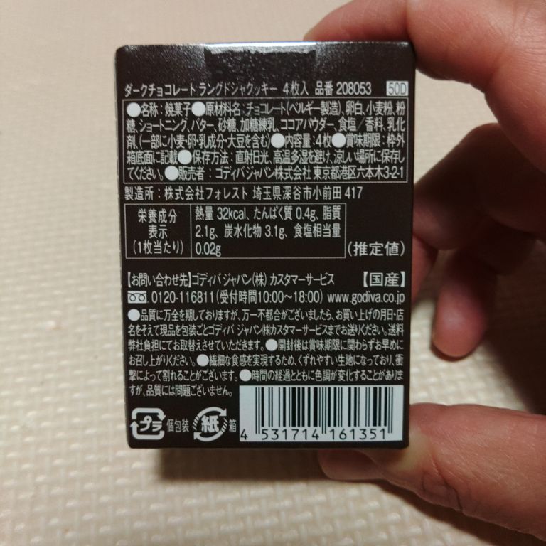 チョコレートを練りこんで焼き上げたラングドシャでダークチョコレートをサンドしたクッキーが4枚入ったミニボックス。ちょっとしたギフトにぴったりです。