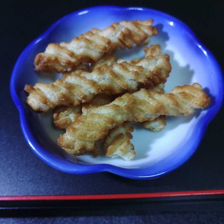 頭をひねって、ひねくりかえして思案しているうちに・・・今あるような「ひねったお菓子」の形にたどりつきました。