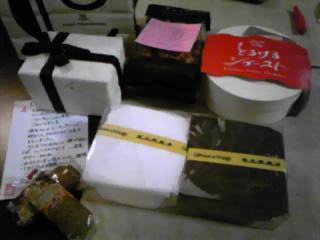 いよいよ今日で最後。あまり実感はないものの現実はきちんと受け入れている婆、ビシっとスーツ着用で出勤引継ぎも完璧に?終わり殆ど仕事のなくなった婆、荷物整理や残務をこなしつつお世話になった取引先にご挨拶の電話を入れるその度に涙腺ゆるめの婆、いちいちホロリ大人じゃないなぁ自分時間が経つのも意外と早く気付けばもうお昼。今日が最後という事で誘われて部署の女性だけで近くのホテルでランチビュッフェお腹いっぱい食べますた午後から引き続き残務を片付ける婆。これが意外と大変な作業で残った取引先への挨拶どころではなくなっている。早く終わらせねば・・・!何とかギリギリで完成させ後任者へ無事引き継ぎ完了。後は頼んだぞ!!・・・と、そろそろ時間かな。おもむろに席を立ちロッカーに隠しておいたお菓子を持参。部署の面々やお世話になった他部署の方々へ配り始める。うちのボス(部長)にだけは今までのお礼としてハンカチを手渡す。これやってると本当に今日が最後なんだと実感。その後席に戻ってしばらくすると部署からの記念品贈呈婆のイメージは花より団子という事で花束ではなく食べ物になったとか。まぁそれはそれでありがたい。そして皆様約3年間お世話になりました。その後会社置きしていた荷物の自宅配送を依頼して全て終了。特に予定も誘いもなかったので真っ直ぐ帰宅帰り道今までの事や挨拶し損ねた取引先の事等いろいろ考えていたらまたしても涙・・・それなりに積んできた日々だったからなぁ・・・。画像は今日いただいてきた記念品の数々。全て食品というところが笑える。ありがたいメッセージなども添えられ本当にありがたいの一言に尽きる。大事に食べさせてもらいます!さて。明日からは気持ちを切り替えて早いトコ次の仕事を探さないとファイトー!自分!!!