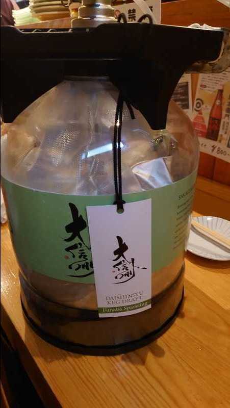 おばんざいの盛り合わせ 大信州スパークリング頼みました 生酒です 初めて見る方も居ると思いますが、KEG DRAFTの樽は生の日本酒を海外でも飲めるようにと長期間保存を可能にしたものです オーダーしたら、写真撮るのに樽を置いてくれました