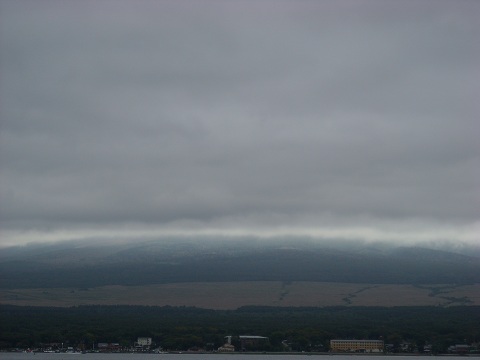 ホテルに着いて不覚にも熟睡してしまい、予定していた夕食を食べに行く事が出来なくなり、結局コンビニ弁当で済ませると言うしょぼい2日目でしたが、それも「まぁ、いいか」と思える私の性格なのでとにかく3日目の富士山に期待をしつつ朝を迎えました。このホテルにした一番の理由である「窓から富士山が見える」との条件は3日目の朝も見事に裏切られ、雲が厚く富士山頂を覆っていました。ホテルで朝食を済ませ出発したのは10時くらいでした。この日の予定は山中湖で富士山を見て、ホテルのフロントでもらった遊覧船「山中湖オデット号」にでも乗り、河口湖付近で名物「ほうとう」を食べ高速を使わずに山梨から埼玉県秩父市に抜ける山越えで帰ろうと計画していました。この日の朝は前日以上に肌寒く、温度計は10度前後。私はちょうどいい位なのですが、嫁さんは寒がりなので外に出ると「寒い、寒い」の連発。だから薄手のジャケットでも持ってくればと言ってたのに、と心の中でつぶやきながら一路山中湖を目指しました。富士五湖道路には乗らず一般道を使って山中湖まで、日曜日とあって車も多かったです。山中湖の外周道路を湖越しに富士山を見られるスポットに移動。車を止めてしばし富士山を眺めましたが、やっぱりダメでした。うーん残念!それと、あまりの寒さに遊覧船もパスしました。 雲に覆われた富士山を山中湖から望む山中湖から河口湖へ移動したら途中で渋滞にはまり、到着は昼過ぎになり「ほうとう」を食べに適当に探した店に入りました。実は山梨名物の「ほうとう」は各地に似たような幅広のうどんがあり、我群馬県も「おっきり込み」あるいは「煮ぼうとう」と呼ばれる幅広煮込みうどんがあります。今回初めて群馬県以外の「ほうとう」を食べるので楽しみにしていました。群馬のほうとうは味噌味としょうゆ味とありますが、今回食べたのは味噌味の「ほうとう」です。うどんも中に入っている具も似た様なもので、どちらも同じような感じでした。山梨県の「ほうとう」もおいしかったです。昼食を済ませ次に向かったのは河口湖畔にある「ブルーベリーの里」です。河口湖大橋を渡って湖沿いに少し走ったところにあります。正式には「河口湖自然生活館」と言います。ここのブルベリーソフトクリームはおいしかったです。時期がよければ一面に咲くラベンダー越しに富士山が見えるそうで、きっと綺麗でしょうね。この時間になってようやく富士山頂が僅かに見えるくらいになったのですが、想像していた青空に映える富士山は見られませんでした。「今度は天気のいい日にくるぞ」と決意して家路につきました。 ようやくちょっとだけ姿を見せてくれた富士山帰路は河口湖から石和温泉方面に進み国道140号線を使って埼玉県秩父市に抜け、長瀞、寄居と通り伊勢崎到着は思っていたより早く夕方7時頃には帰宅しました。この雁坂トンネルを使って山梨県から埼玉県に抜けるルートは知りませんでした。事前に地図で調べたのですが道の細い山道だと思っていたのですが、山道には違いありませんが道幅もありとても快適に走れる道でした。群馬からだと長野県経由で山梨県というルートが一般的なので、これは良いルートを知りました。今回のドライブは総距離約550kmで、ガソリンは途中で40リッター程入れました。私の車はエルグランドなので通常は1リットル当たり5.5km位ですが、今回は約7.8kmでした。高速をあまり使わず山道が多かった割には良かったと思います。支出は合計で約40000円でした。まぁ、こんなもんですかね。もともと運転好きな私なので久しぶりに長距離を運転してとても爽快でした。やっぱり時々は長距離を運転したいですね。早速帰宅後は「次はどこにしようか?」と思案中です。そんな私を見て嫁さんは「バッカじゃない」と思っている事でしょう。それも「まっ、いいか」と考える私でした。3回にわたってお付き合いいただきありがとうございました。ブログのほうもできるだけ更新していきますので、時々訪れてやってください。 それでは・・