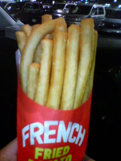 つくづくジャンクフードが好きなんですね。いわゆるB級グルメといわれてる食べ物ですね。「焼きそば」「お好み焼き」「焼きとうもろこし」などなど。数えたらキリが無いですがレストランでの食事よりも、どっちかというと道端の屋台などで売られているような食べ物に目が無いのです。日本ではお祭りの時に見られる露天の食べ物が代表ですが、韓国のソウルなどはどこにでも屋台が出ているので、旅行中の食事をすべて屋台の食べ物で済ませるほど好きなんです。それとまだ行った事が無いのですが、いつか日本一の屋台街、博多の屋台を堪能するのが夢と本気で思っているのです。で、本題ですが、皆さんは「Rasポテト」ってご存知でしょうか?ようはフライドポテトなのですが、「マック」や「モス」等のファーストフードで売られているポテトではなくて、粉状のポテトを水で溶いて専門の機械で成形して油で揚げる、というオランダ発祥のポテトだそうです。ホームページによると35年ほど前に日本で販売を始めたそうで、オランダではもっと歴史があるようですね。最近ではあまり見かけなくなったみたいで、ネット上でも「ラス・ポテト」の情報交換をしているところもあるようです。愛車のヘッドライトが球切れでスタンドで交換しようかと思ったら1個で1500円もするというので、近くのカインズ・ホームにて購入しました。私が知っている限り私の地元でこの「ラス・ポテト」が買えるのはカインズホーム内にある「カインズ・キッチン」だけなので、「チャンス!」とばかりに「ラス・ポテト」を食べました。「ラス・ポテト」のいいところは冷凍ポテトではないので、揚げ時間が短い事からかあまり作りおきをしておらず、注文を受けてから揚げてくれることが多いので、大概アツアツの揚げたてが食べられます。これがまたたまらなくおいしいのです。もしお近くに「ラス・ポテト」があったら一度ためしてみてください。意外とはまるかも知れませんよ。「ラス・ポテト」