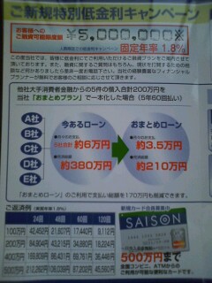 今日実家の郵便受けに最近多いと言われている「融資詐欺」と思われるはがきが来ました。見たことあるようなロゴとデザインで、インチキなくせにお金をかけているダイレクトメールでした。どうしようかな?と迷ったのですが、市民の敵である詐欺集団を電話でもかけてどうにかしてやろうなどと威勢のいいことも言えない小市民なので、とにかく「こんなダイレクトメールは気を付けて!」の意味も込めてアップしちゃいます。写真1 ダイレクトメール左ページ写真2ダイレクトメール右ページ どこかで見たようなクレジットカードと500万円もの大金を、年率1.8%という低金利での融資。本当にうそ臭いですよね。写真2の電話番号の下に見づらいですが東京都貸金業登録番号などと書かれています。もちろん登録番号もインチキです。セゾングループにも「(株)セゾンオフィシャルプラザ」という会社はありません。確実にインチキです。おそらくこの電話番号に連絡すると「保証金」だとか「登録料」などと言葉巧みに騙そうとするでしょう。普通なら騙されないと思いますが、切羽詰った人だったらもしかしたら・・・こういった融資詐欺やありもしないアダルト系の料金請求など、良くもまぁ悪い事を考えますよね。その知識を他に使えないのか?と言いたいですよね。私の住む群馬県でも毎日のように還付金詐欺やら振り込め詐欺などで騙されたというニュースが地元の新聞に載っています。月並みですがあわてないで家族や友人に相談してほしいですね。私の妹は銀行に勤めているのですが、お年寄りなどは「息子が不始末を犯した」という電話を受けるとパニックになるようで、実際に行員が怪しいと思って「良く確かめて!」と声をかけても最初は納得しない人がいるそうです。「騙す位なら騙された方が幸せ」という歌もありましたが、騙されないようにお互い気をつけましょう。それにしても腹が立ちますね。もっとがんばれ警察の皆さん!今日はあまり楽しい話題ではなかったので最後に我が家の愛猫「あんず」を紹介します。あんず・・女の子です。何の悩みもなくゴロゴロしています。あんずの話題も後々ご紹介しますね。それではまた。