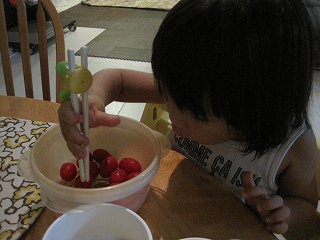 3つに1つくらいは、口に入る前に落ちてたけど。。素晴らしい進歩♪