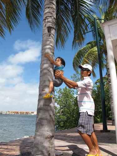この間、パパの仕事上がりがプラヤ・デル・カルメンだったので、藤丸を連れてカンクンからバスでお迎えに行ってきました☆カンクンから、約1時間の旅。こっちに帰ってきてから、基本は車での移動なのでタクシーやバスでの移動はめったにしないので、藤丸さんにもイイ機会かな?と思い。。本人も、『バス~~~、バス~~』とご機嫌の道のりでした♪さて、久々のプラヤ。夕方に着いたので、日差しもきつくないし散歩には丁度イイ時間帯です。そう。。。。昼間のプラヤは、今の時期暑いしね。。で、パパと合流後に夕食に。普段プラヤでご飯とか食べないので、美味しいレストランとかわからないので適当に入ったお店。メイン通りの1件のお店に。プラヤは、どこのお店も生で演奏とかしていてとても賑やか。で、カメラを持ったオッチャンがメキシカンハットを持ってきて記念撮影。後で、写真持ってくるからねぇ~~~~と言ってたんだけど結局帰るまでに来なかったり。。。折角だから見たかったのに~~。その辺、ノンビリ。。メキシコ。ご飯は。。。。まぁ。ハッキリ言って美味しくはなかったけど。で、お値段もそこそこだけど。。。まぁ。。雰囲気代よね。そんな久々のお出かけでした☆このところ、カンクンは低気圧の関係で天気悪~~い。一度、低気圧が入ると4・5日は曇りとか雨模様です。今も、外で雷がゴロゴロ。。昨日は、朝から大雨で仕事のキャンセルや変更があってバタバタ。家の車が、普通の車高なんだけどカンクンは雨が降るとすぐにあっちこち水没するので、うかつに移動出来ません。。。うっかり水溜り??池状態の道にはまると、車すぐエンジン水かぶるし。やっぱり、ここは車高の高い車じゃないと雨の日は大変です。日本からカンクンに戻って1ヶ月ちょっと。藤丸もキッズに戻って、1ヶ月。日本語オンリーだった藤丸も、少しですがスペイン語が出てくるようになりました。。っても、オラ~~(あいさつ)とアディオス(さよなら)くらいだけど。。日本語は、2単語、たまに3単語の言葉を話すようになってきました。スペイン語も、理解はしてるようだけど。この間、キッズに行った時に色塗りをした紙を持ってて、先生にコレは何~~??ってスペイン語で聞かれて、『ゾウ~~~』って答えてたし。スペイン語→日本語で答えるみたいな。。。先生わからんし~~~。。多分、日本語だろうなとは思ってると思うけど。まぁまぁ。。日本語メインでいいんです。だって、学校行きだしたら絶対スペイン語になってくるしね。