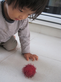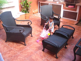 昨日、お友達のお家へ誕生日会へ行ってきました☆藤丸と3ヶ月違いのお友達で2歳のお誕生日です。ついこの間、弟が産まれて早くもお姉さん。去年も、お誕生日に呼んでもらって行ったのが1年前。。。。早いなぁ。そして、今年はカンクンに住む日本人の出産ラッシュ??っていうくらい、沢山のお友達が。。みんなハーフちゃんで、純和なのは藤丸だけだったけども。。みんな子供連れで、保育園みたいな雰囲気でした☆ハーフちゃん0歳3人、1歳1人、2歳1人。メキシコ人1歳~4歳?もう少しお兄ちゃんの子も1人居たけど、4人かな。。で、日本人2歳1人みたいな。来年は、ここにハーフちゃん1人&日本人1人が追加予定。。また、来年はもっとすごい事になるんだろうなぁ。。*******さて、メキシコの誕生日と言えば『ピニャータ』。紙で出来た人形の中にお菓子が詰まってます。で、それを歌を歌いながら棒でたたく!!最終的には、人形がボロボロになり中のお菓子が降ってくる。。。2歳前後の子供達ばかりだったので、ピニャータが壊れるまではいかなかったけど。中のお菓子は、しっかり頂きました☆そして、今日は朝からアメ~~~、アメ~~~言ってます。。