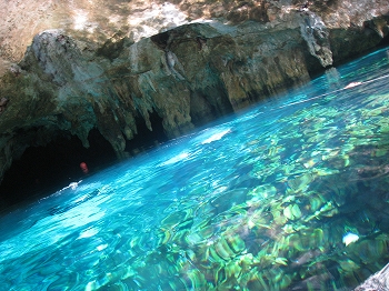 ここ最近、暑くってなかなか外に出る勇気の出ない日が続いていたり。家の中で内職作業に追われていたりで、引きこもりがちな日々。。。そんな中、お友達からのお誘いでグランセノーテ&ドス・オホスのスノーケルツアーに参加させて貰いました♪『グラン・セノーテ』は、少し前に日本のTVでイマルさんの弾丸ツアーで紹介された場所。その後、カンクンにくるお客さんの中にはやっぱり行きたいっ!!って希望が多くて、ツアーが出来たくらい。私がガイドしてた時には無かったので、今回初のセノーテです。『ドス・オホス』こっちのセノーテは、私もプライベートツアーのアテンドで何度か行っている場所。けど、実はお客さんの案内で自分は泳いだ事無かったりして。。。なので、初遊泳~~~。感想的には、やっぱり綺麗~~~~~~~~~~~~~!!ツアーの工程が、朝一にグラン・セノーテに入れるツアーだったので人の来る前のメッチャ綺麗な時間帯にセノーテに入れました。そう。。。人気の出てきたセノーテなので人が沢山来るんだけど、やっぱり人が多くなると水がスグに濁ってきちゃう。。。朝一の綺麗な時間を知ってしまうと、やっぱり午後からのセノーテは少し残念。それでも、もちろん十分キレイなんですけどネ。今回は、藤丸も連れてきてOKだよ~~と言ってもらったので、朝から藤丸連れて出発。最初、水冷たいし藤丸連れて1人は不安かなぁ~~と思ったけど、浮輪を付けてしっかり泳いできました。暗い洞窟の中も全然平気。。あっち~~って、自分から指示出すし。けど、やっぱり途中から上がりたくなって後半はドライバーさんが少し見ててくれました☆だって、私も少し泳ぎたいし~~。藤丸は、ドライバーさんを気に入ったらしくバイバ~~イって、勝手にお散歩。まぁ。。助かったけど。↑セノーテの上から余裕に手をふってます。。けど、本当にセノーテはキレイな世界です。私は未だに、セノーテダイブには行ってないんだけどスノーケルだけでもこんなにキレイ。水の世界と陸の世界。境目がわからない不思議な絵。光と水と自然と。なんだか、自然ってこんなに潤ってて生き生きしているものなのね~と感じる。水の中に花が咲いているみたい。けど、やっぱりセノーテなので水は冷たく。。後半のドス・オホスはぐるる~~って感じで終了。藤丸さんも飽きてきてたし、子連れだと着替えとか準備に時間かかるし。なので早めに上がってました☆水の冷たさが実はイヤでなかなかダイビング~って気持ちになれないのですが。。。キレイなんだろうな~~間違いなく。カンクン居る間には~~~って、思ってます。その前に、ウエットを日本から持ってこないとなぁ~~~。さて、そんな感じで久々のお出かけでした☆