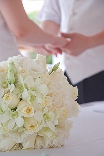 もう、先月の話になってしまったけど。お仕事で、ウエディングのお手伝いに行ってきました。始めて、私のHPからのご案内で来て下さったお客様。とても、マメな旦那様でメールのやりとり以上に会った時の印象もそのまま。そして、何よりも奥様をすご~~~~く大切に、そして日本の男性にしてはめすらしく??って失礼かな。。とても、レディーファーストな旦那様でした☆そして、奥様もとても可愛らしい方。旦那様が、レディーファーストになる気持がわからなくもなかったり。場所は、ホテル『フェスタ・アメリカーナ・コーラルビーチ』。式自体は、別の旅行会社さんの手配で。私は、衣装のレンタルとフォトの手配。式の前日に衣装合わせ、当日にヘアーのセットが終わった後にアクセサリー合わせ。バタバタでしたが、式はとても幸せムードいっぱい。初対面のお客様で、この時だけの繋がりでもあるけれど、お2人の大切な式に参加させて頂き幸せな時間を共有させてもらった事、とても感謝です。そして、そんな縁が不思議でもあります。『一期一会』実はこの日、式の後に写真撮影だったんだけど雨雲が。。。。ビーチやプールでの撮影の時、実は大嵐だったんです。カメラはレンズが濡れてしまうと大変なので傘でガード・・・・だけど、風が強すぎて全然ムリ。で、ちょっと場所を移動してプールへ。プールやビーチで水に入っての撮影。。と言っても雨でもうビショビショです。天気も曇り空で、少し残念そうでしたが。たぶん、計画やすべてを段取りしていたであろう旦那様が一番残念だったと思うのだけど。そんな雰囲気を一切出さずに、奥様をリードする姿になんだか暖かい気持になりました。きっと、素敵な家庭を作っていくのだろうなぁ。日本に帰ってから1ヶ月後に披露宴。そこで、この写真を見てもらうんです。とおっしゃっていたのだけど。きっと、そろそろなんじゃないかなぁ~。そんな幸せのお手伝いを出来る仕事を出来る事。とても、ありがたいなぁ~とふと思ったのでした。あ。。。でも、披露宴は快晴でありますように☆