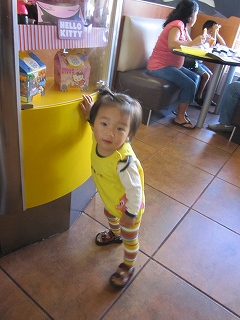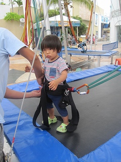 しばらくぶりの日記更新。カンクンに帰ってから、だいぶたってるけど??バリで日記止まってったな。。なかなか、ブログ更新するのにPCに向かう時間を取るのがヘタなだけですが。ブログの更新をこまめにしてる友達は、すごいなぁ~と思ってしまう。更新しない間にも、いろいろあったのでそのうちに?書いていこうとは思っています。さて、折角の日記なので新しい日からとりあえず更新♪この間、カンクンのホテルゾーンにある、大きなシィッピングモール。『La Isla』に行ってきました。とくに見るものがあって行った訳ではないけど、散歩がてら。。。。そして、今までもあって自分がしたいなぁ~~と思ってたけど、いい大人のアジア人がやってたら超~目立つ&見世物だよなぁ~と思っていた、逆バンジ~??それを、子供達がやってるのを発見。そして、旦那が何歳から出来るんだろう?と。。日本じゃあ、間違いなく2歳未満の子供は出来ないだろうけど。あっさりと、藤丸をみて大丈夫と。まぁ、メキシコの大丈夫は自己責任だけど。出来るということで、やらせてみようという事に。5分程度で、$100ペソ。泣いて出来なかったらムダ金だなぁ~と思いつつ、支払いをして順番待ち。そして、藤丸の番。以外に、全然平気だし。こう見るとチビのくせに一人前。そして、少し不安そうだけど。飛んでました☆しかも、以外に高くて約4Mくらい??案の定、チビが飛んでるし~~って事で周りに人だかりが出来はじめ。。その頃には、少し怖くなってきたのかイヤイヤしはじめ終了。高い高いが好きなのは好きだけど、今日は本当に高かった~~。けど、2歳未満で逆バンジーデビューを果たしてきました☆次から、この前通るたんびにねだられたらどうしよう。と思いつつ。1つ、成長した息子だした。****そうそう、日本に居る間にずいぶんと言葉が増えた藤丸さん。最近は、しっかり2単語の言葉が話せるようになってきました。完全に日本語だけど☆パパ・運転とか、、ママ・開けてとか。先週からキッズクラブも再会。昨日は折角のプール講習だったのに熱で行けずじまいだったけど、そのうちキッズでスペイン語も覚えてくるでしょう。と、いうよりもキッズで言葉の壁にぶつかる?でしょう。まぁ。。海外で生まれた宿命という事で、頑張れ~~~☆
