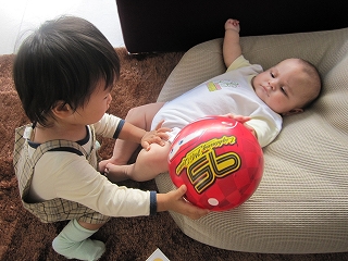 何だか、バタバタしていて日記のUPをしていなかったけど、今日は藤丸のNatacion水泳教室の初レッスン♪今の託児所は、そろそろ10ヶ月目くらいになるのかな??今までは、クーポンを買って時間を見て1日2~3時間くらい預けていたんだけど、前々から水泳のレッスンが込みになったパックがあるからやってみない??って。前から進められてたんだけど、今回から受けてみる事にしました☆イロイロ経験させるのはイイ事だしって事で。なので、今週から週に2回のプールレッスンが始まります♪そんな初日。レッスンは45分なので、私もプールの上で藤丸を観察。どんなレッスンするんだろ~~って楽しみだったけど・・・・。泣いてレッスンどころじゃありません。そりゃあ、そ~~だわ~~。先生、始めて会う人だし。。。人見知り全快で泣く泣く。プールは好きなくせに。知らない人に預けられるし、知らないとこに連れてかれるしかなりの恐怖体験だったみたいです。45分間ず~~~と泣いてましたとさ。。まぁまぁ。。。キッズと一緒で、そのうち慣れてくれるでしょう。頑張れ~~~藤丸~~~。先生にも、みんな最初はそうだから~って2週間もすれば慣れるわって感じでした☆4月に日本へ行く前に、慣れてくれるといいんだけど。。帰ってくる途中にもう車で爆睡。そりゃあ、あれだけ泣けばネ。。。。*************************先日の引越しパーティー次の日。デコレーションで使った風船の後片付け中~~のサービスショット☆風船って、どうやって処理するんだろう。。。いまだに、部屋に転がって藤丸のオモチャになってます。。だって、割るとうるさいし、捨てるにも嵩張る。日本じゃあ、風船大量に使う事あんまり無いしね。。