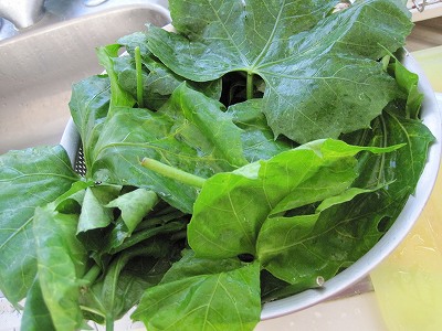 今年のカンクンは、暑いけどすぐに熱帯低気圧が来て雨ふったり。。。なんだか、不安定な気候です。まぁ・・・日が出れば暑いのは変わらないけど。さて、ココ最近の藤丸はキッズがお気に入り。色々な工作をしたり、色を塗ったりが楽しいようです☆だんだん、自分でいろいろな事が出来るようになってきたからねぇ~~~。子供の成長は早い。家ではなかなか、思い切り色塗りとかさせてあげれないし。。。。床はまぁタイルなので、書かれても落ちるんだけどネ。。。この間は、壁に書かれてしまいましたさ。まぁ。。ペンキ塗ればいいしねぇ。しょうがない。さて、そうそうこの間ネットで調べモノしていて『チャヤ』の効能を調べてました。なかなか日本では耳にしない言葉だと思うんだけど、野菜??いや・・・食べれる草って感じかな。マヤの人達が食していて、今でもよくユカタン料理とかに使われる葉っぱです。ちょっと、草の匂いがきつくて今まで料理に使おうと思った事なかったんだけど、たまたま旦那にカレーって言われてたので、カレーなら入れてもいいかも。って事で、買ってみました♪スーパーで葉っぱ選び。。。ガサガサしてたら、指に痛み!あれ~~??と思いながら、気のせい??と思っていたけど、どうやらチャヤ、棘があるみたい。気をつけないと危険です。遅いけど。『チャヤ』は別名、マヤ・ホウレンソウって言われています。ビタミン・ミネラルなど栄養価が高いので、野菜不足になりがちなこちらの人達にとっての栄養源です。効能とかをみても、なんだかいっぱいありすぎて本当に??って感じですが。。とりあえずは、体にいいのは確か。さて、実際の調理方法は。。。とりあえず、水で良~~~く洗う。こちらは、水道水は石灰が含まれているから先に水道で洗ってから、ミネラルウォーターで更に水洗い。この2重作業があるから、なお更野菜を料理するのが面倒だったりする。。。その後に、硬い茎部分は切っちゃって、沸騰したお湯で5分チョイ茹でる。茹でたチャヤに新しく水を足してミキサー。これを、カレーに投入。ちなみに、出来上がり写真撮り忘れてます。。。。あと、こちらに来てよく使う食材。マッシュルーム♪キノコ類が少ないから、安いマッシュルームは大活躍。私的には、カレーとかシチューとか煮込み系の時は丸ごと入れてしまうのが好きです。旨みが中に閉じ込められるから食べた時にマッシュルームの味がしっかり出て美味しい♪日本だと、結構高いイメージがあるんだけど。こちらは、大きめのマッシュルーム15個でも¥120くらいかな~。メキシコ料理でも、チーズを挟んだタコスにマッシュルームを入れたり。メキシコ人もよく使う食材です。あ。。。あと、もう1品。カレーの時に隠し味で使うメキシコのチリ。『チポトレ』大きめのデカイチリを燻製にしたもの。よくスーパーとかでも缶詰めになって売ってます。少し入れるだけで、結構辛くなるんだけど何故か後をひく辛味。たまに、パスタとかにも入れて使ってますよ。メキシコのチリは種類が多くて、日本人からしてみれば訳わからんって感じだけど、意外に美味しくてクセになるものもあるんです。