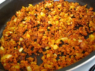 旦那がチチェン&エクのツアーへ行ってくると、たま~に買ってきてくれるお土産が。。。豚ちゃんの燻製とロンガニッサ(チョリソー)の燻製。エクバラム遺跡の近くにテモソンという名前の町があるんだけど、こちらはこの燻製『Ahumada』が特産♪私も大好き。最初は豚ちゃんの燻製だけだったんだけど、最近ここのチョリソーも美味しい事が判明。って事で、ロンガニッサを料理中~~~~。メキシカンチョリソーって、スーパーに売ってるのとか見ると緑色だったり・・・赤だったり、着色料ガンガンに使ってます!!って感じで全然、食べる気も買う気もなく・・・やったらしょっぱかったりするし美味しくないと決めつけてました。けど、美味しいとこのは美味しいのね。メキシコの食材を使ったご飯です♪と、いうか簡単に『ロンガニッサの焼き飯』で。焼き飯=チャーハン。カンクンに来るまで、焼き飯って日本食って思って無かったけど・・・・多分、普通に日本人は日本食じゃなく中華だと思ってると思う。。けど、メキシコ人には焼き飯=日本食なのよね。未だに焼き飯は日本食って思えないけども。。まぁまぁ、いいとしてまずはロンガニッサを炒めます♪このロンガニッサ、油がた~~~~ぷり出るので油無しで炒めるのがポイント。しかも、カリカリになるまでよ~~く炒めた方が美味しい☆途中、ピンピン跳ねてくるので玉ねぎでも入れて跳ね防止に。だんだん、イイ色あいに。その後にご飯投入。ロンガニッサにはアチョーテという香辛料が使われてて赤みのあるオレンジに。この香辛料が以外にクセがあって美味しい。で、今日はついついスーパーで買い物しててメキシコ人につられ買ってしまった、シアントロ。パクチーも。日本に居た時は苦手な部類の香草だったけど、メキシコに来てからたまに買ってしまう。。目玉焼きも乗っけて、出来上がり~~~☆本当は半熟くらいでとろ~~とした卵が食べたいけど、、こっちでは卵は良く火を通さないと怖くて。。なので両面焼きの目玉焼きです。食べる段階で、目玉焼きにサルサかけた~~いと思ってしまったけど、あいにくレモンしかなく。。。。まぁイイかって事で、メキシカン風に卵にレモンで食べました。以外にさっぱりしてて美味しいんですよ~~。オムレツにトマトソースとレモンなんかもオススメ。で、調理中~藤丸はというと・・・・カキの缶詰めいたずらしてて私の後ろで中身の油をぶちまけてました。。。。開けれないと思って油断してたら。。キッチンの床、油まみれです。あぁ。。。子供居ると余計な仕事が。。*******************ここ最近、自分でご飯を食べるのはいいんだけど。。藤丸の周り、ご飯まみれ。ウチの母がよく私達が食べ散らかした後に、ニワトリでも呼びたいってよく言ってたけどまさにその通り。。。。良く肥えたニワトリが育ちそう。