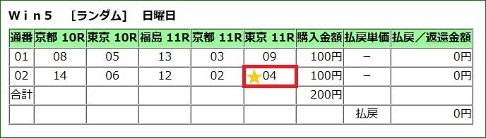 WIN5で目指せ50万円! 予想と結果、仲間とのメールの記録。