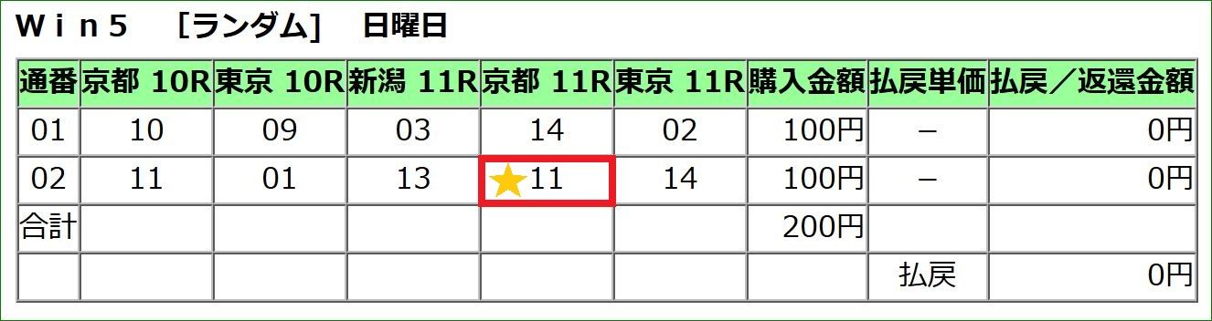 WIN5で目指せ50万円! 予想と結果、仲間とのメールの記録。