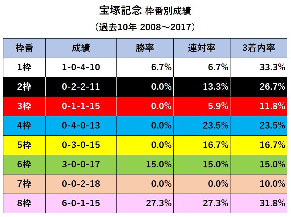 ​​​​​​​​​​​​​​​​​​​ ​宝塚記念​ の枠番別成績​ クール