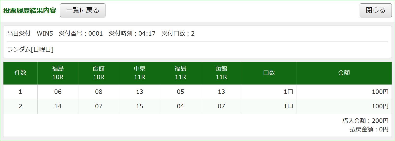 WIN5で目指せ50万円! 予想と結果、仲間とのメールの記録。