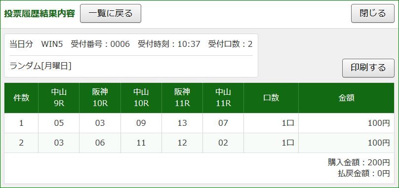 WIN5で目指せ50万円! 予想と結果、仲間とのメールの記録。