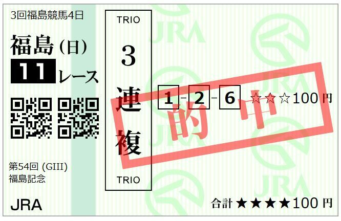| 的中馬番 | 3-7-2-13-12 |