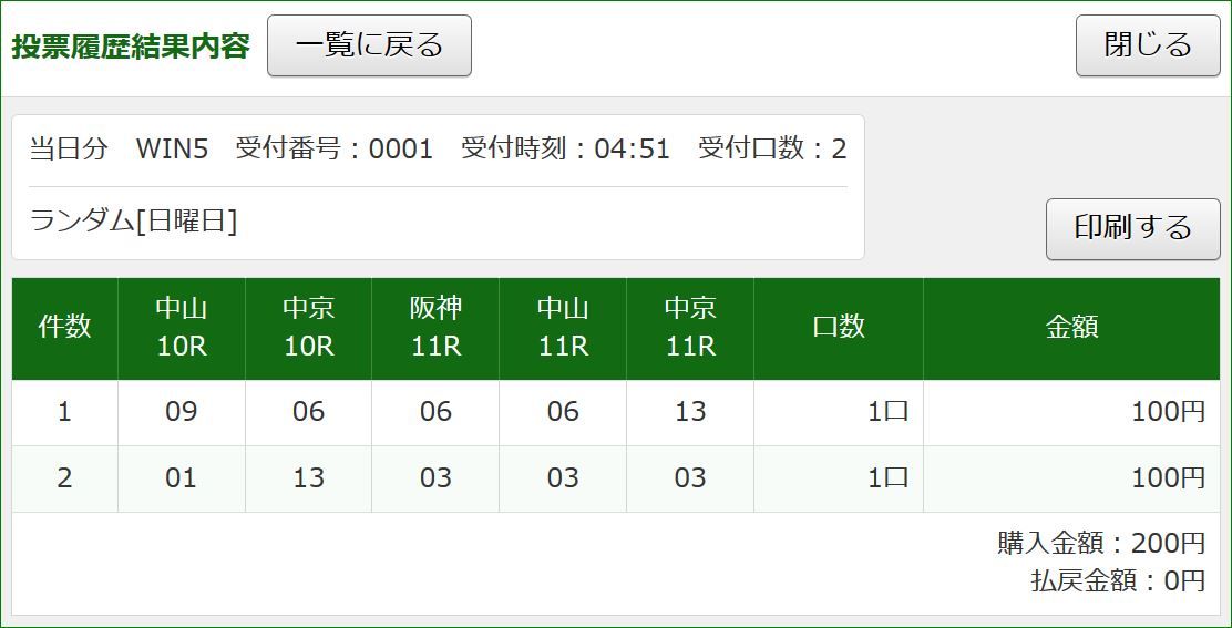 WIN5で目指せ50万円! 予想と結果、仲間とのメールの記録。