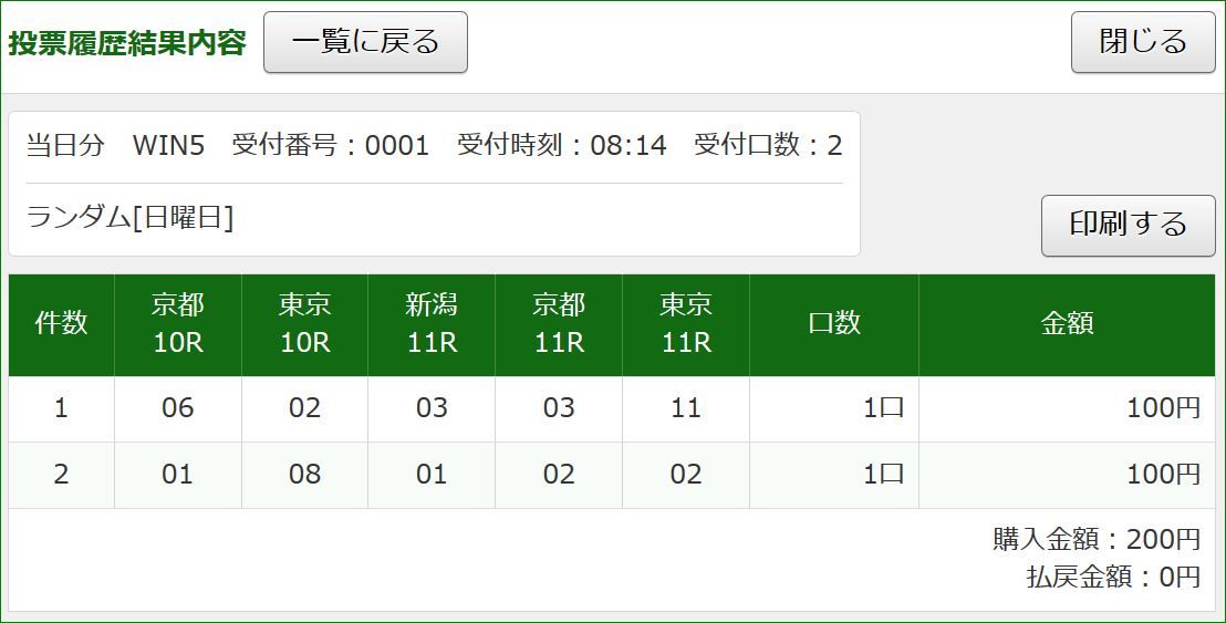 WIN5で目指せ50万円! 予想と結果、仲間とのメールの記録。