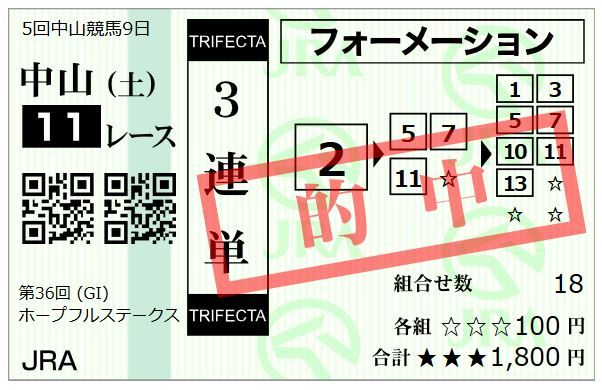 | 的中馬番 | 10-2-7-15-11 |