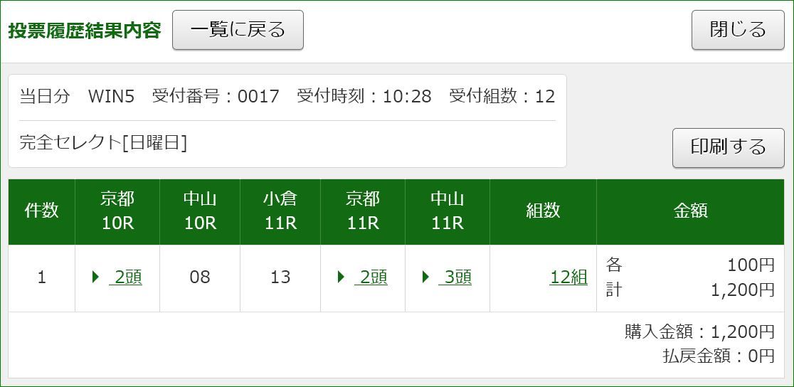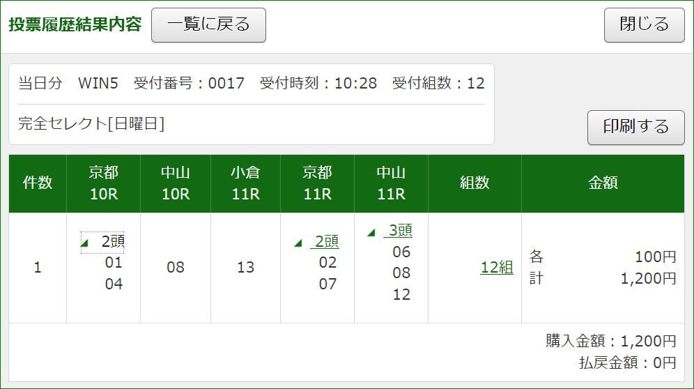 WIN5で目指せ50万円! 予想と結果、仲間とのメールの記録。