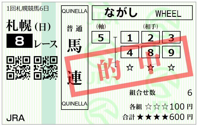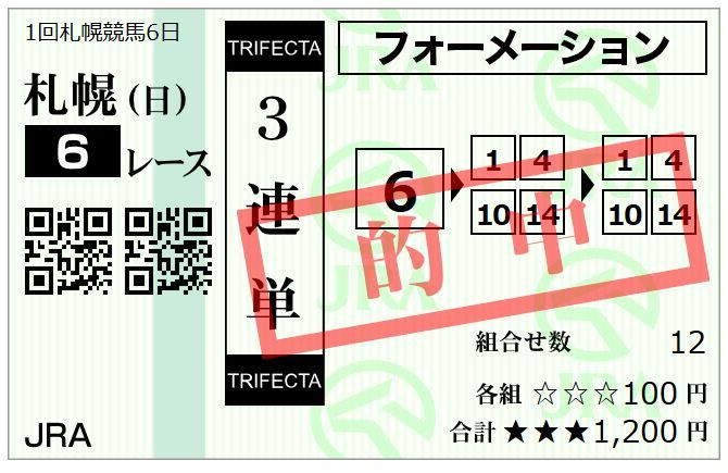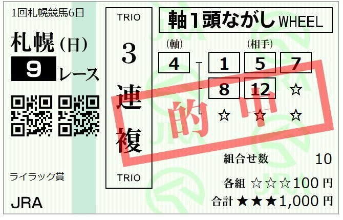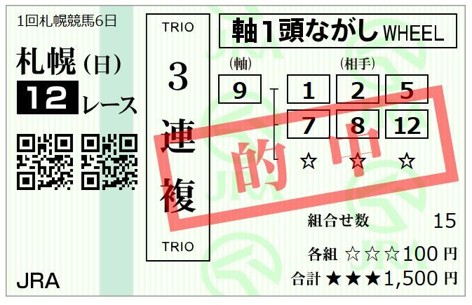 | 通番 | 新潟 9R | 札幌 10R | 新潟 10R | 札幌 11R | 新潟 11R | 購入金額 | 払戻単価 | 払戻/返還金額 |