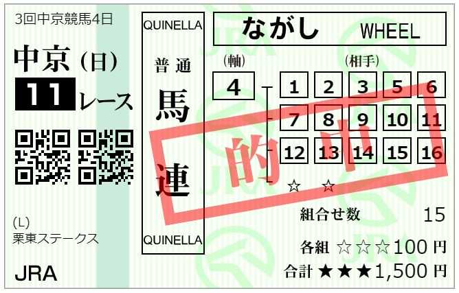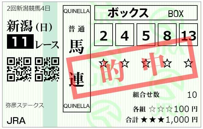 | 通番 | 中京 10R | 東京 10R | 新潟 11R | 中京 11R | 東京 11R | 購入金額 | 払戻単価 | 払戻/返還金額 |