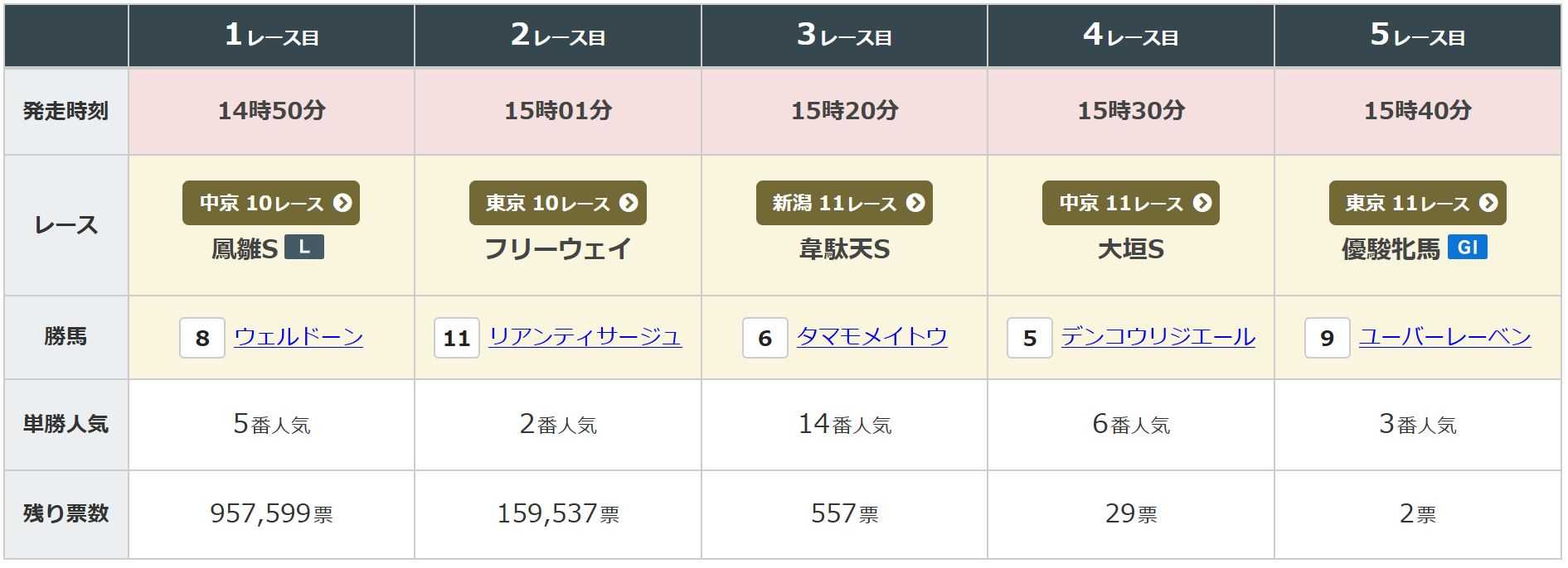 | 通番 | 中京 10R | 東京 10R | 新潟 11R | 中京 11R | 東京 11R | 購入金額 | 払戻単価 | 払戻/返還金額 |