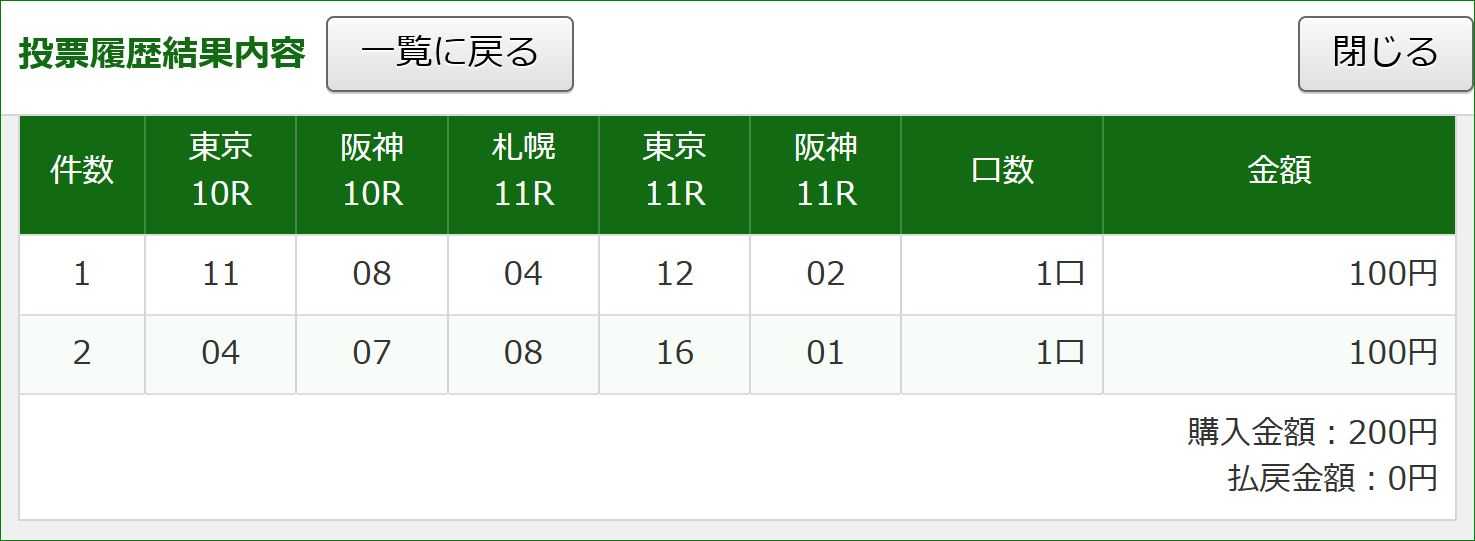 WIN5で目指せ50万円! 予想と結果、仲間とのメールの記録。