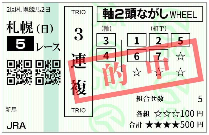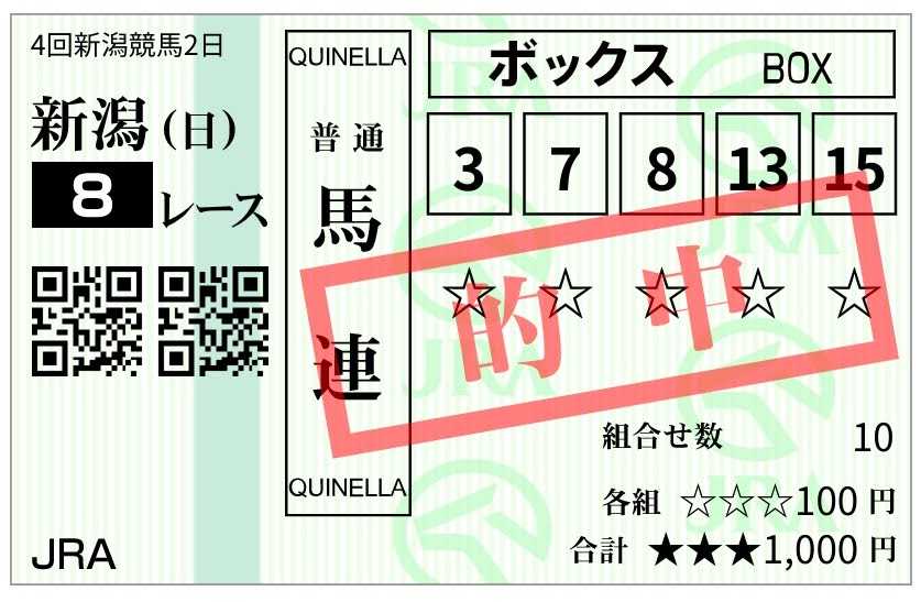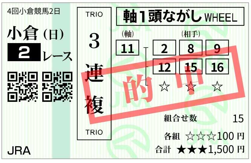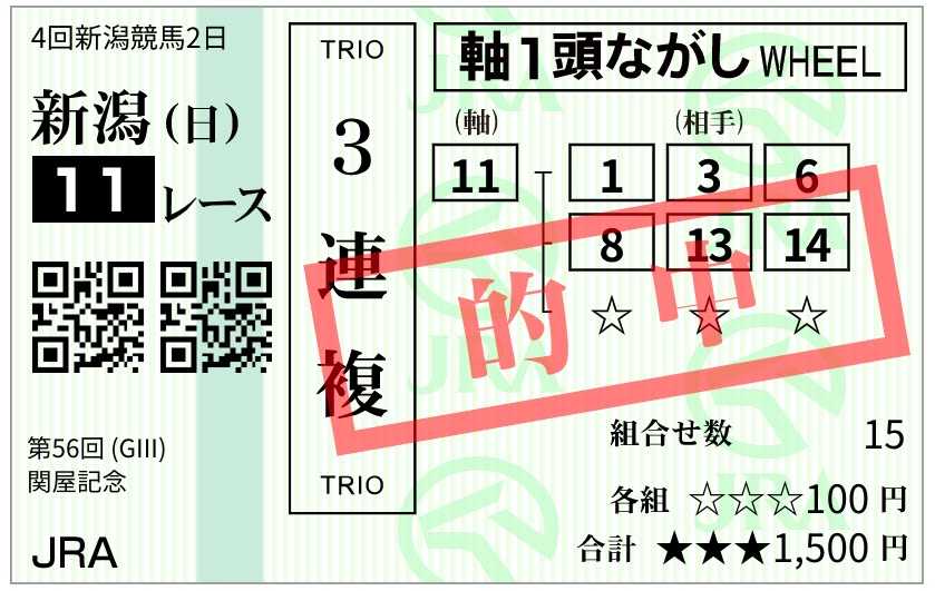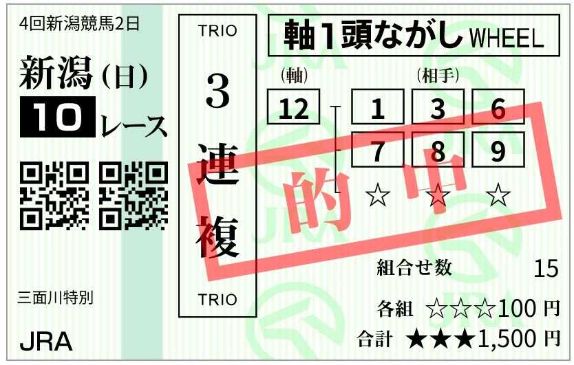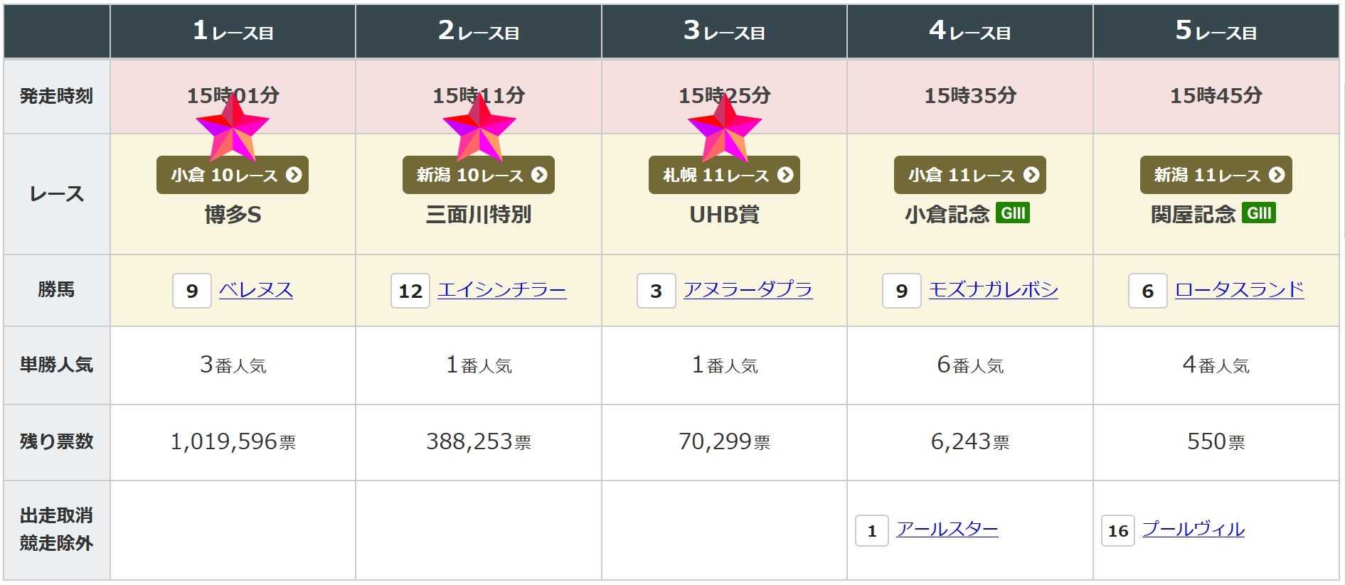 | 番 | 小倉 10R | 新潟 10R | 札幌 11R | 小倉 11R | 新潟 11R | 購入金額 | 払戻単価 | 払戻/返還金額 |