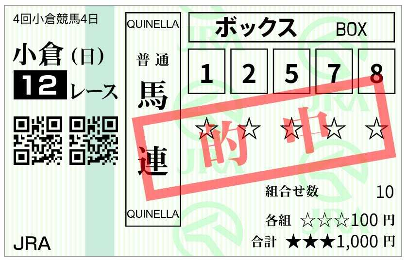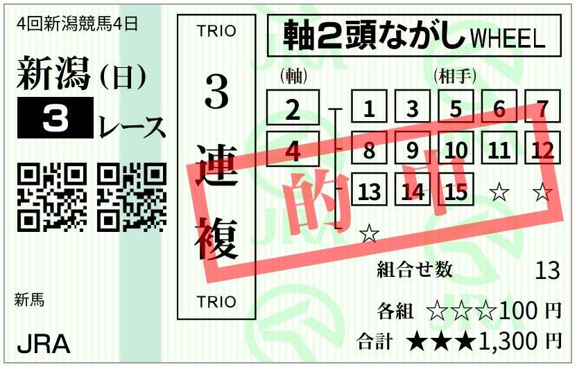 | 通番 | 新潟 10R | 札幌 10R | 小倉 11R | 新潟 11R | 札幌 11R | 購入金額 | 払戻単価 | 払戻/返還金額 |