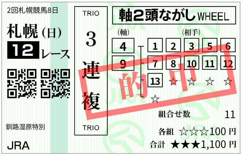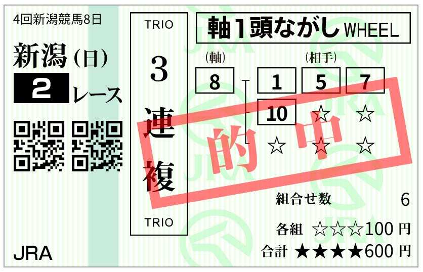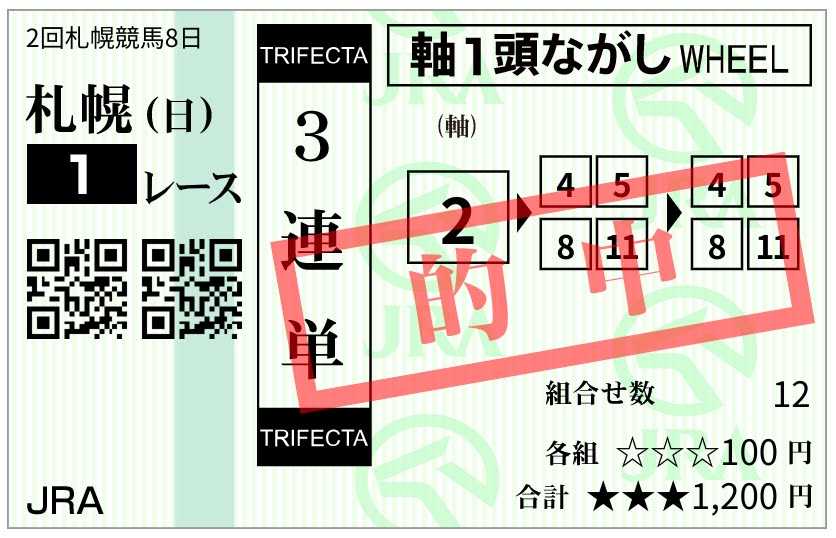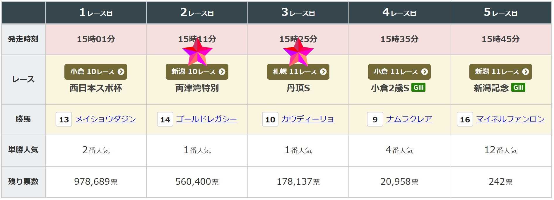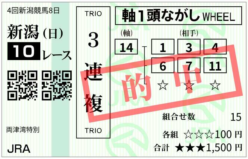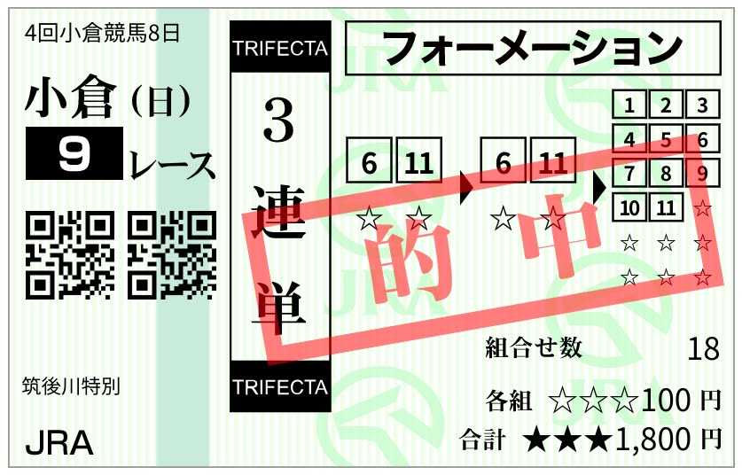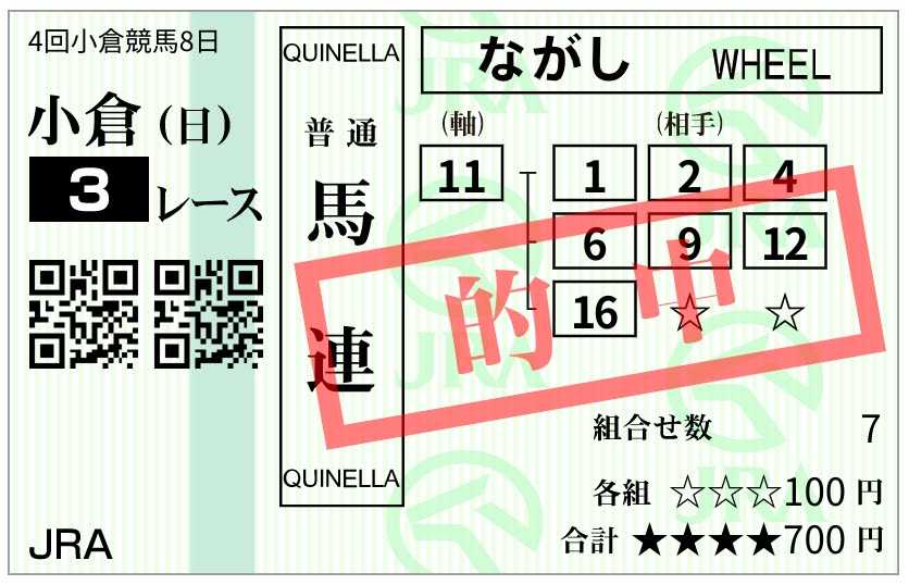 | 通番 | 小倉 10R | 新潟 10R | 札幌 11R | 小倉 11R | 新潟 11R | 購入金額 | 払戻単価 | 払戻/返還金額 |