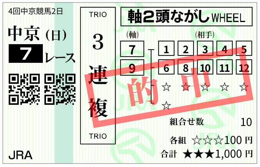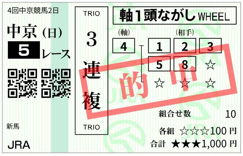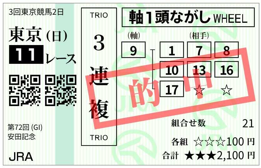 | 通番 | 東京 9R | 中京 10R | 東京 10R | 中京 11R | 東京 11R | 購入金額 | 払戻単価 | 払戻/返還金額 |