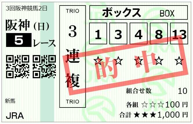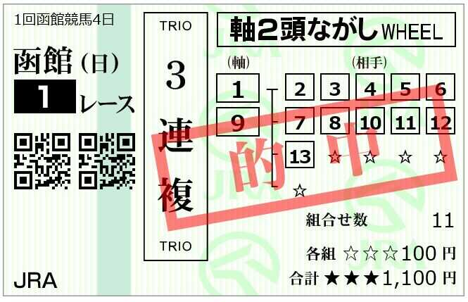 | 通番 | 阪神 10R | 東京 10R | 函館 11R | 阪神 11R | 東京 11R | 購入金額 | 払戻単価 | 払戻/返還金額 |