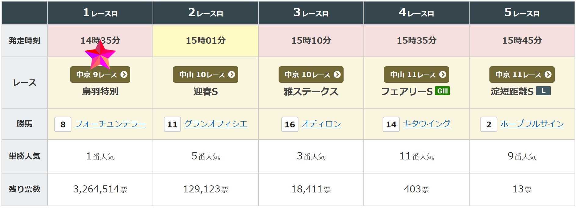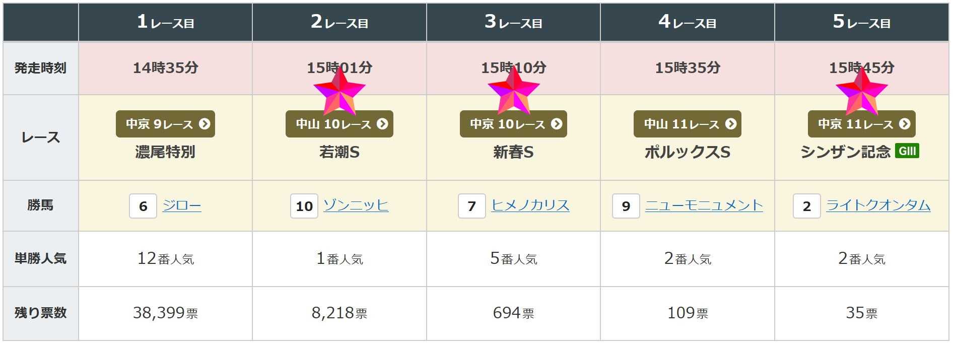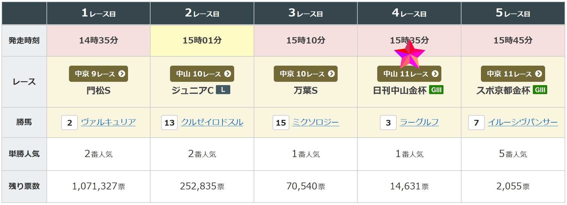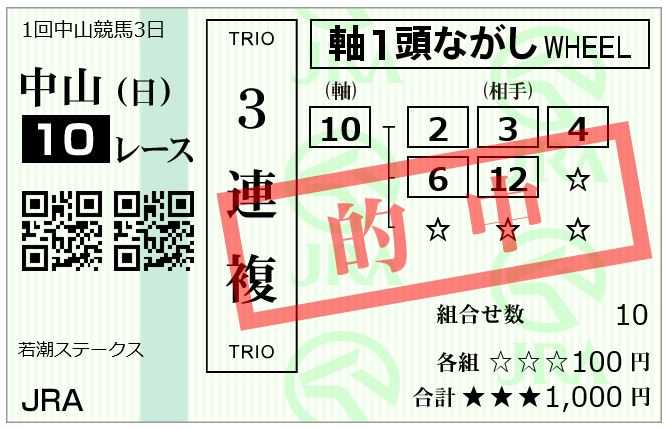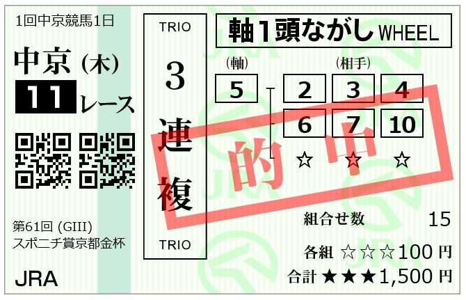 | 通番 | 中京 9R | 中山 10R | 中京 10R | 中山 11R | 中京 11R | 購入金額 | 払戻単価 | 払戻/返還金額 |